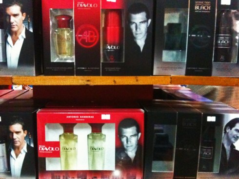 I don’t think it’s something that’s very common around here, but I knew of one reliable place that would have it: good ol’ Nakamura, a grocery/department store that’s probably Tarapoto’s fanciest retail joint.  It’s where I’d gone to buy a baking pan on Saturday (scroll back up for how that turned out), and where I found a shelf offering a selection of scents primarily consisting of 3 brands: Adidas, Playboy, and… Antonio Banderas.
