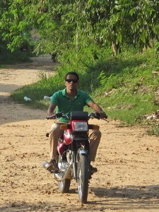 In my first few days, although I could make the short ride between my house and the Technoserve office without incident, I had several predictable mishaps. I often popped the clutch or stalled, and one-time reared up on my bike like I was riding Black Beauty. Miraculously I avoided injury all of those times — only to get hurt in a ridiculously fluky way: one time after parking my bike and stopping to chat for a few minutes with a colleague, I then absentmindedly reached for an object on the ground, and my arm touched the still-hot exhaust tube cylinder. I’ve got a nasty half-dollar sized burn on my forearm that looks like I was branded.