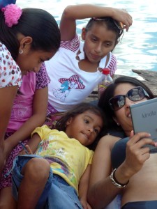 We split up from Sonido 2000 after the river crossing but, having no other plans, soon resolved to check out this fancy wedding. Although the site had been closed off for the private party, no one seemed to question the presence of us four foreigners as we arrived. Guests were dressed in nice clothing and sitting at picnic tables lakeside, enjoying the warm, pleasant day… and the sight of four foreigners arriving and peeling off their clothes to take a dip in the lake somehow didn’t draw a rebuke. Later as we sunbathed on the dock, listening to Sonido 2000 reel off crowd favorites like “Mi Vida No Vale Nada” and “Bajo La Lluvia” (these songs, as many here do, feature melancholy lyrics set to an upbeat, funky tempo), Sarah and her Kindle drew quite a crowd of children to whom she read from Twilight. It was quite a memorable way to cross “crash a wedding” off our Perú bucket lists.
