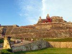 Cartagena’s old walled city and fortress are a UNESCO World Heritage Site, although their beauty wasn’t immediately apparent when I arrived around midnight and found that the hotel I’d made a reservation at was full.  As were a couple others nearby, so I was grateful to find a bare-bones hostel with a vacancy.  The Getsemani neighborhood may be flush with tourists during the day, but at night, it has its sketchy parts.  In a few square blocks, I walked past a number of drunks passed out on sidewalks, a gaggle of hookers and their pimp passing around a bottle, and saw cops with sirens flashing go by in three different directions.